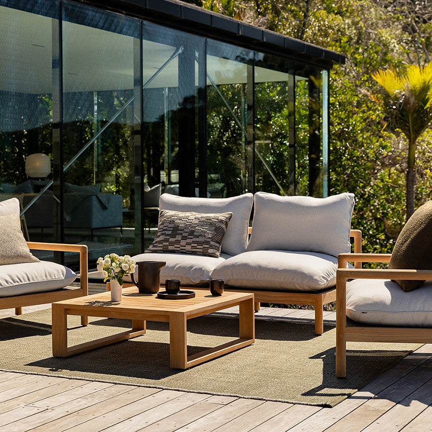 Add bold geometric design to the outdoors with the contemporary aesthetic of the Scout cushion. Featuring deep mangrove tones on a natural base, the raised woven pattern provides a simple, textural aesthetic for a modern living space.