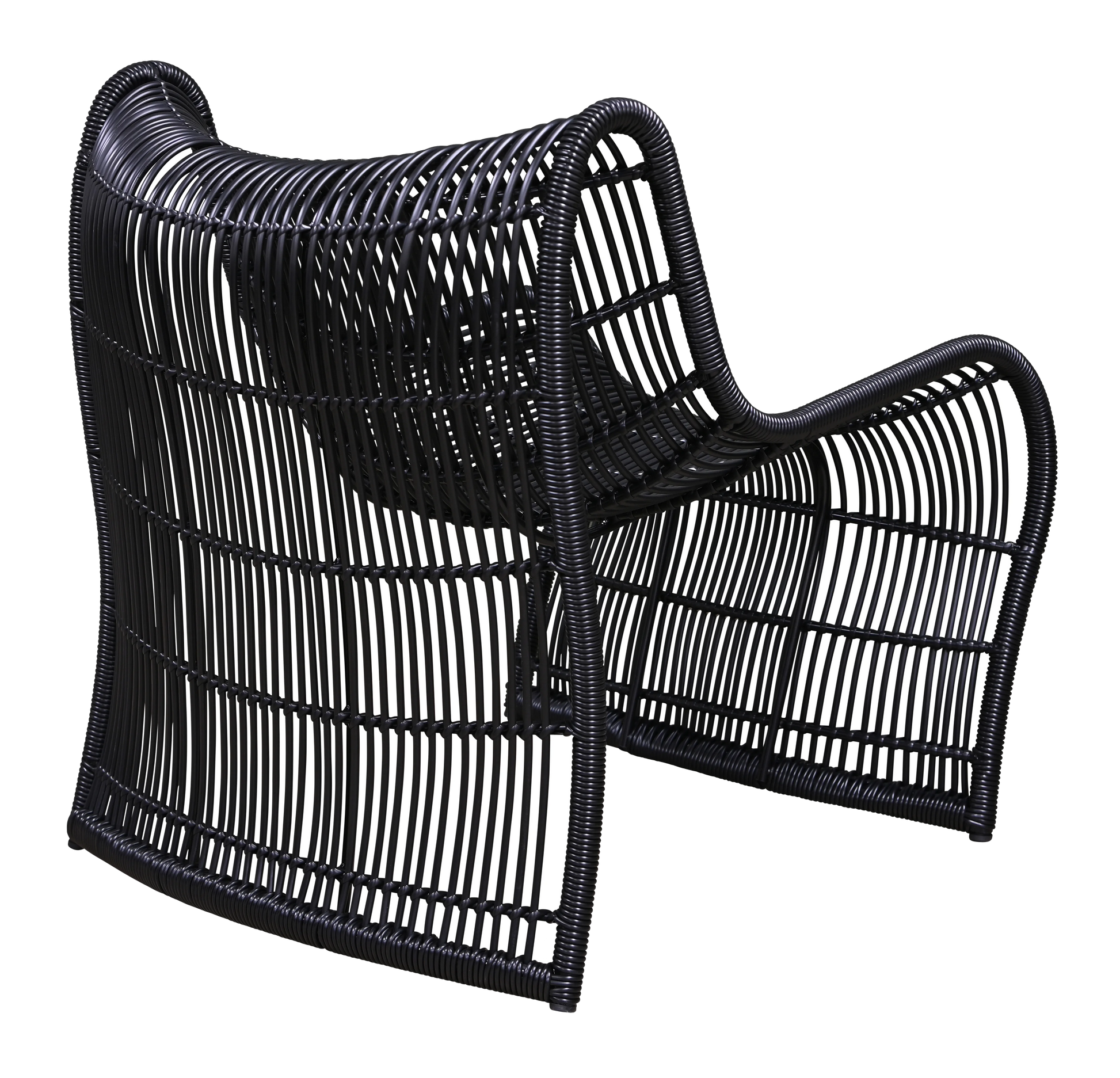 Made of polyethylene weave with aluminium frame. It is hardwearing and has an good UV fade resistance, but to preserve the wave chair it is best not left outside in all weathers.