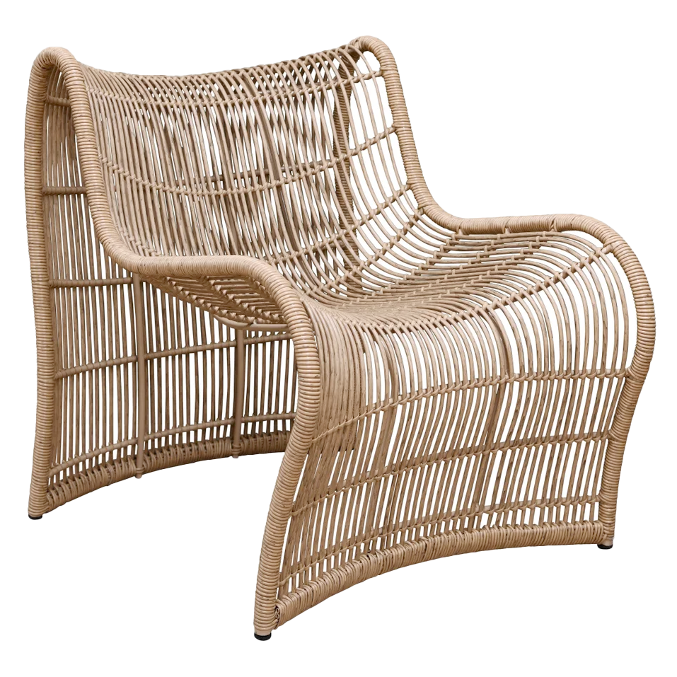 Made of polyethylene weave with aluminium frame. It is hardwearing and has an good UV fade resistance, but to preserve the wave chair it is best not left outside in all weathers.