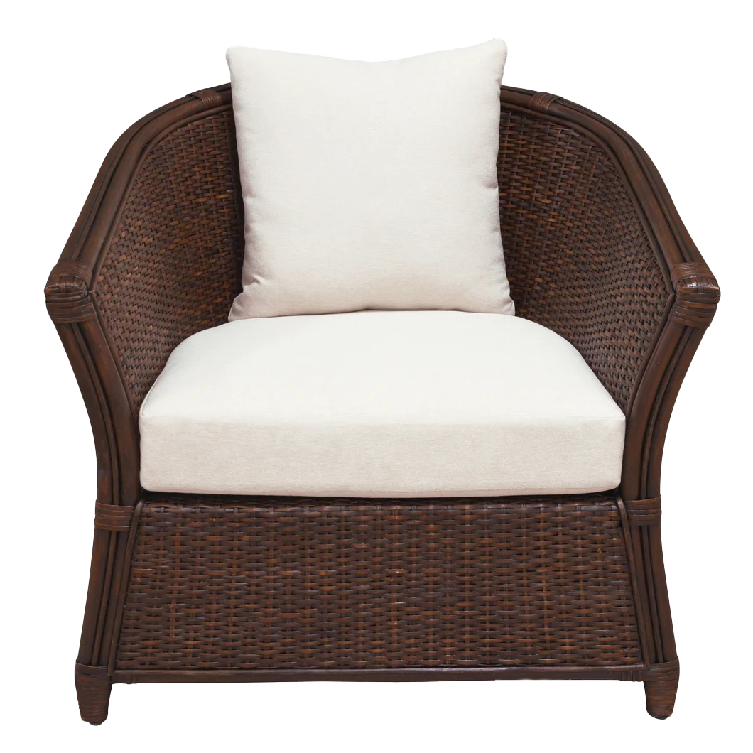 Bring a sense of seaside calm to the lounge, sunroom or covered patio with this dark ethnically sourced rattan armchair. Just add a plump cushion for extra comfort and a pop of seasonal colour.