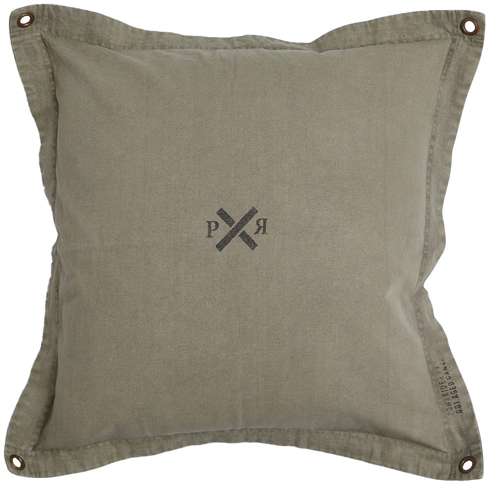 Made from heavy duty aged canvas, the cover has a simple industrial look and feel. The front is screen printed with the Pony Rider logo, and the other side is plain. It has a 5cm canvas edge featuring metal eyelets.