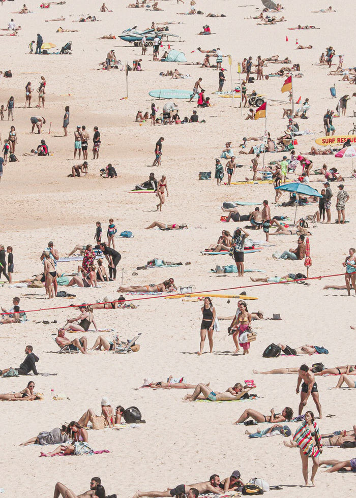 This photographic print features the first taste of Summer at Bondi Beach in Sydney.