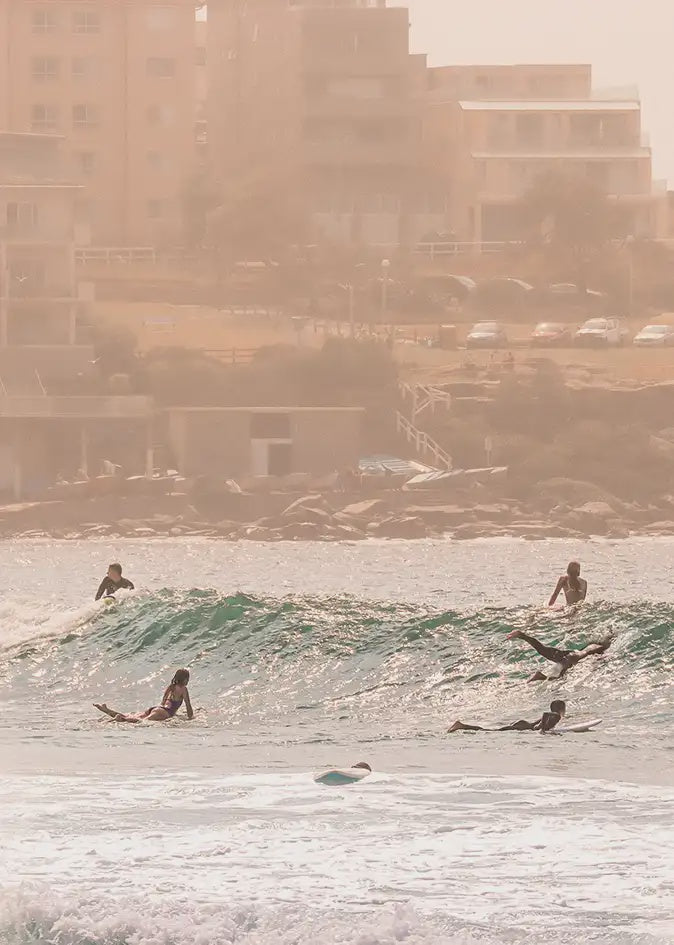 This photographic print features smokey horizons and warm waters on a glorious day at Ben Buckler, North Bondi.