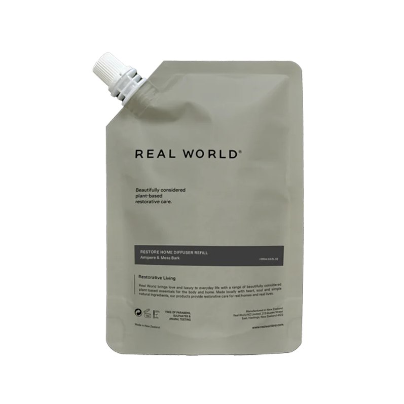 Real World uses a non toxic plant-based base, and this Amipere & Moss Bark scent features gorgeous notes of bergamot, oak wood, amber, leather and moss.