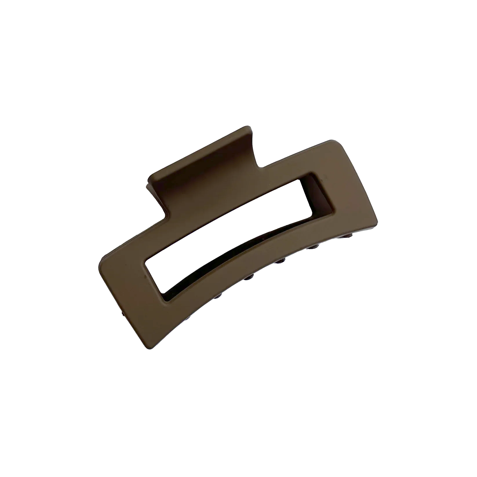 Complete your outfit with this classic rectangle claw clip in deep-muted chocolate brown.