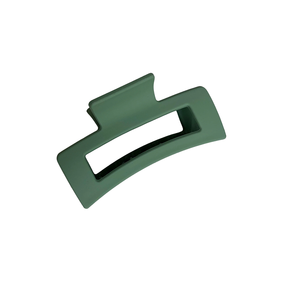 Complete your outfit with this classic rectangle claw clip in soft-muted green.
