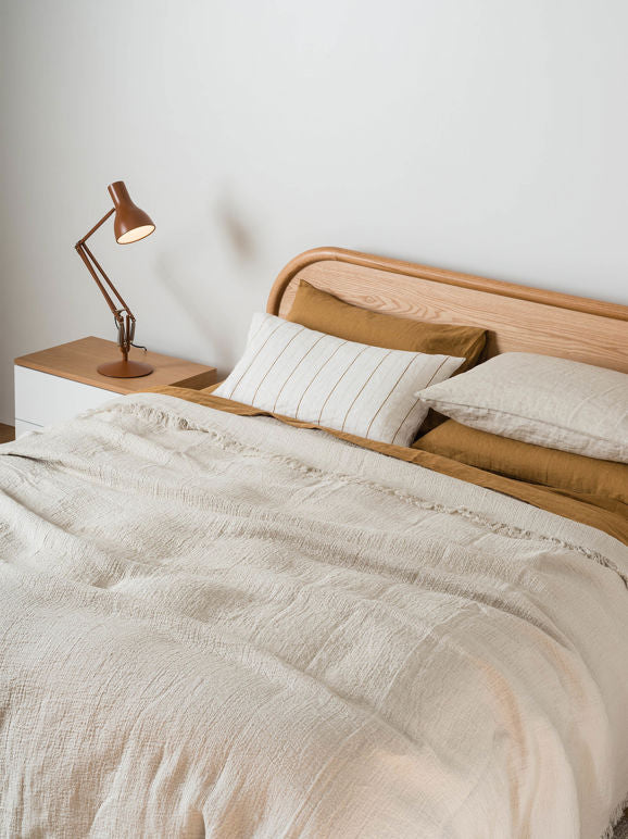 This generously sized mid-weight bedspread is made from beautifully textured linen with a fringe detail on four sides, can be used as a throw or to cover the bed entirely.