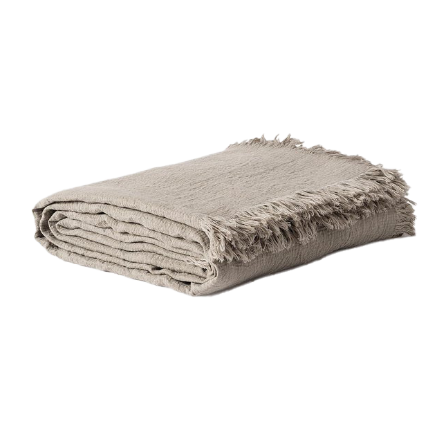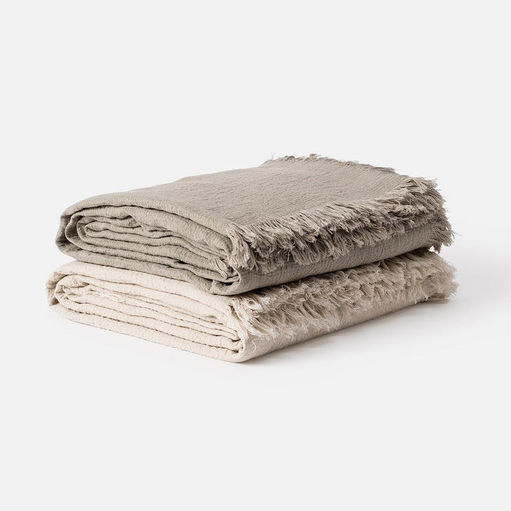 This generously sized mid-weight bedspread is made from beautifully textured linen with a fringe detail on four sides, can be used as a throw or to cover the bed entirely.