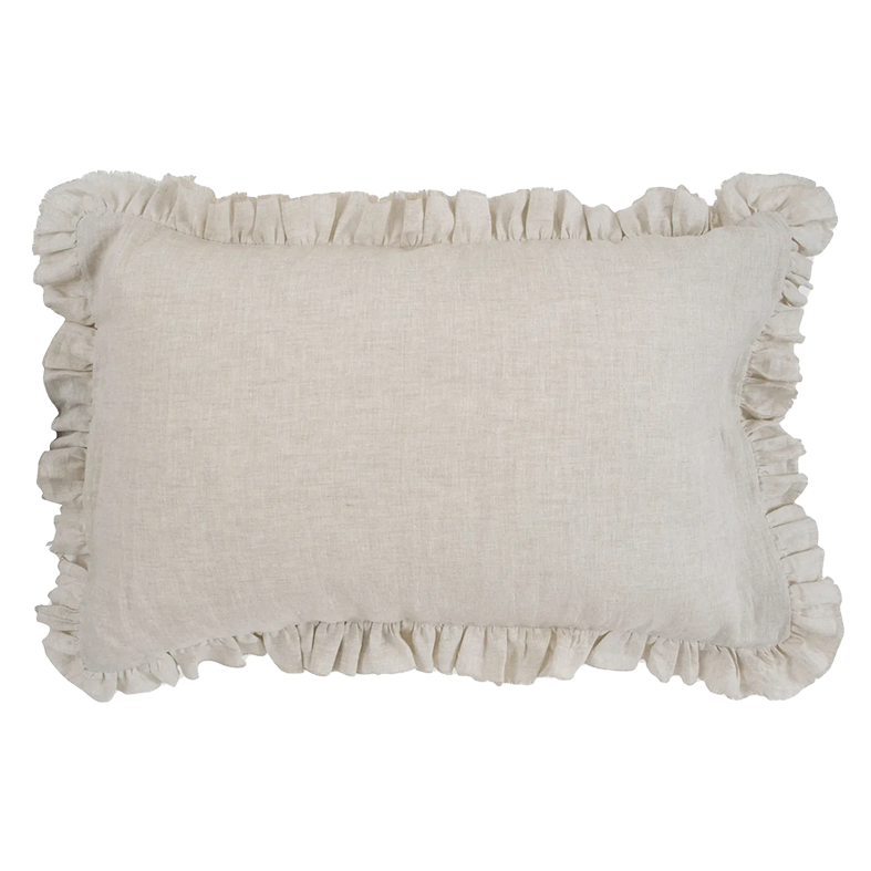 Beautiful set of ruffle pillowcases made from natural European linen, featuring a wide ruffle edge.