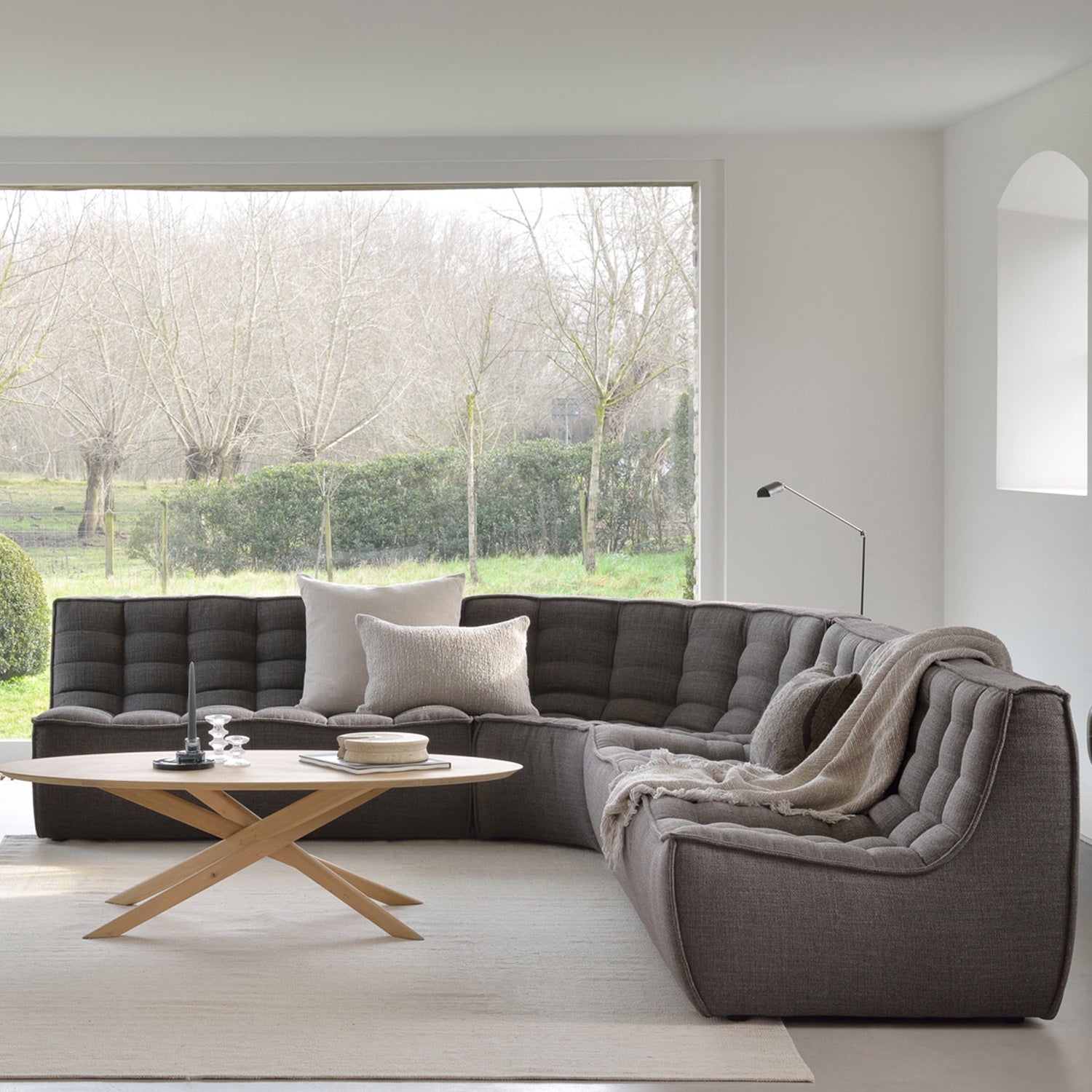 Sebastian curved sofa corner set dark grey