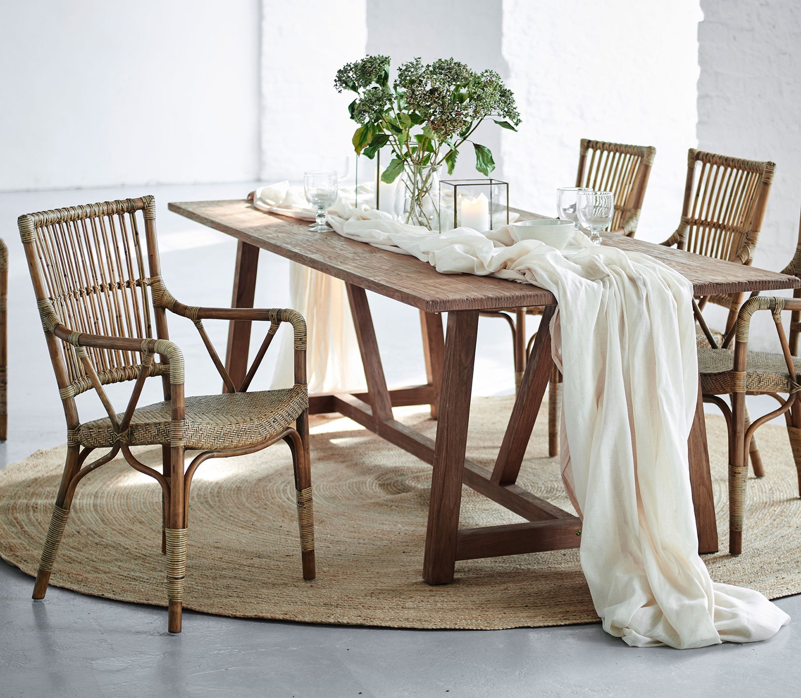 Woven in a traditional herringbone pattern the seat adds textural contrast to the open, airy slatted back.