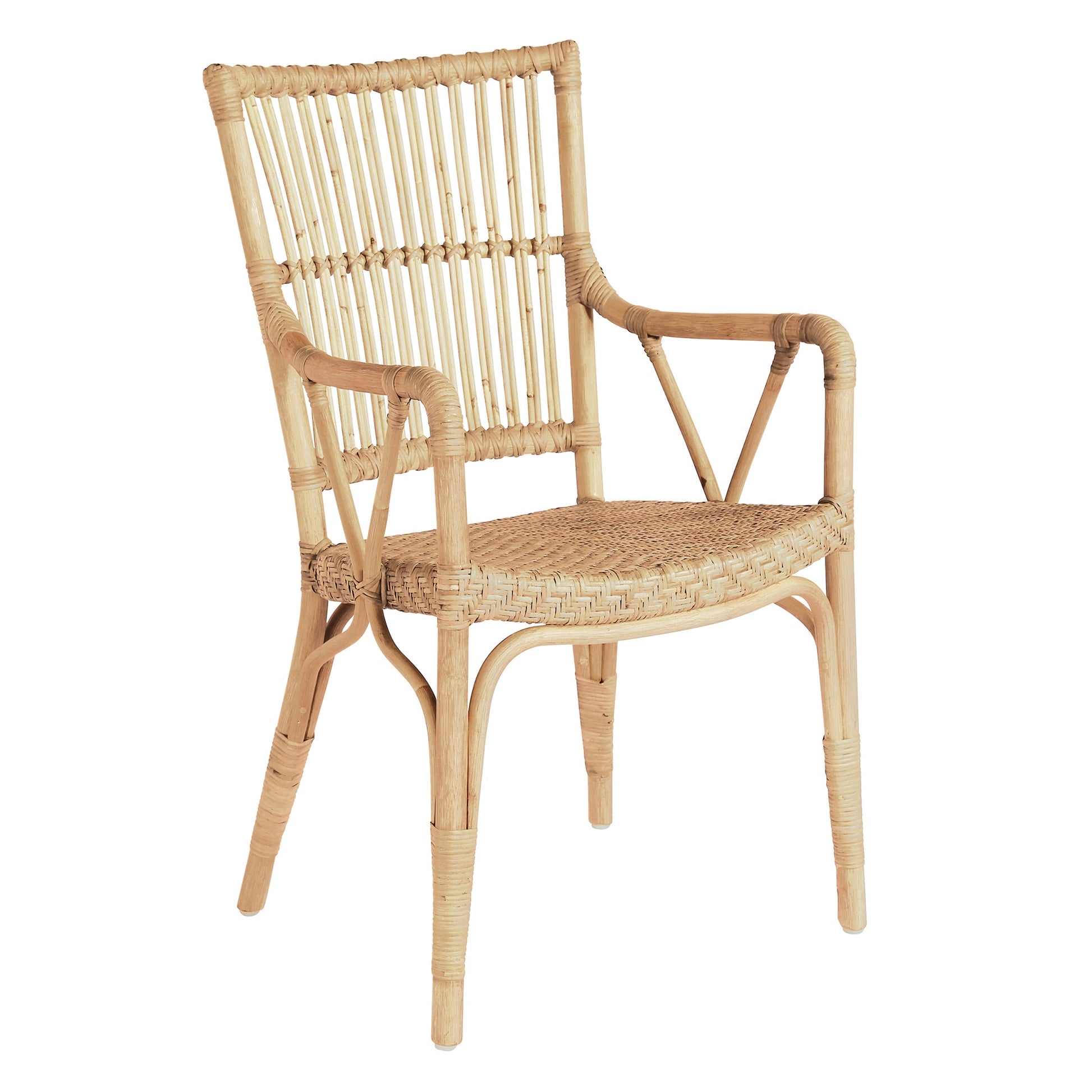 Featuring a classic cane frame with a high square back, slightly sloped arms, and a wide contoured seat for comfortable dining.