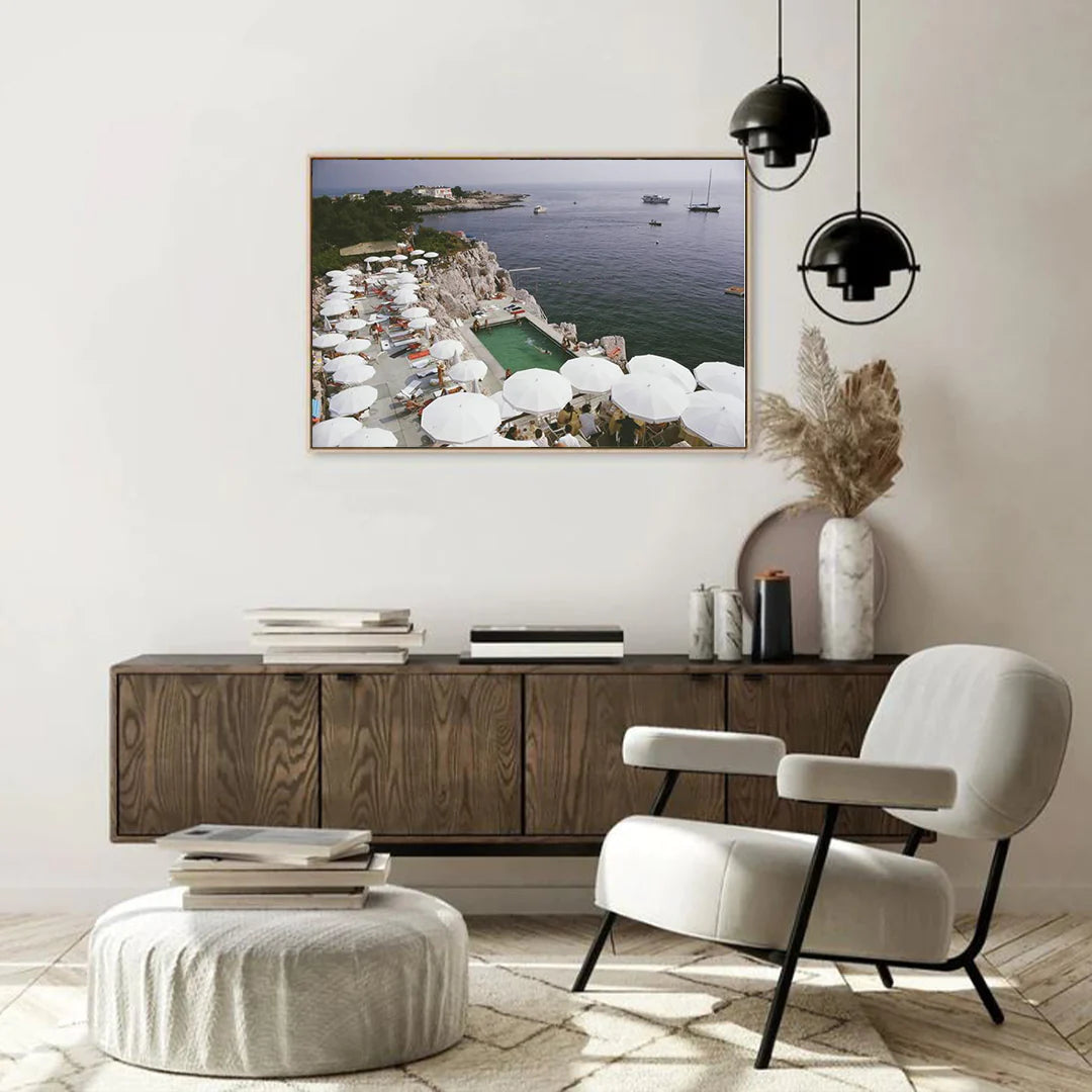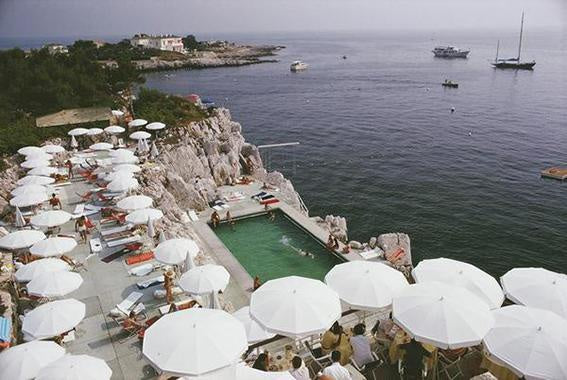 'Pool by the Sea’ was taken by famous photographer, Slim Aarons, in 1969. It shows guests round the swimming pool at the Hotel du Cap Eden-Roc, Antibes, France.