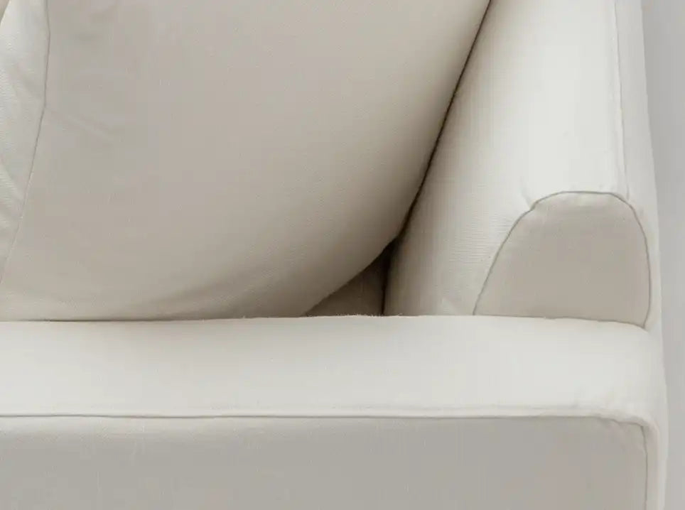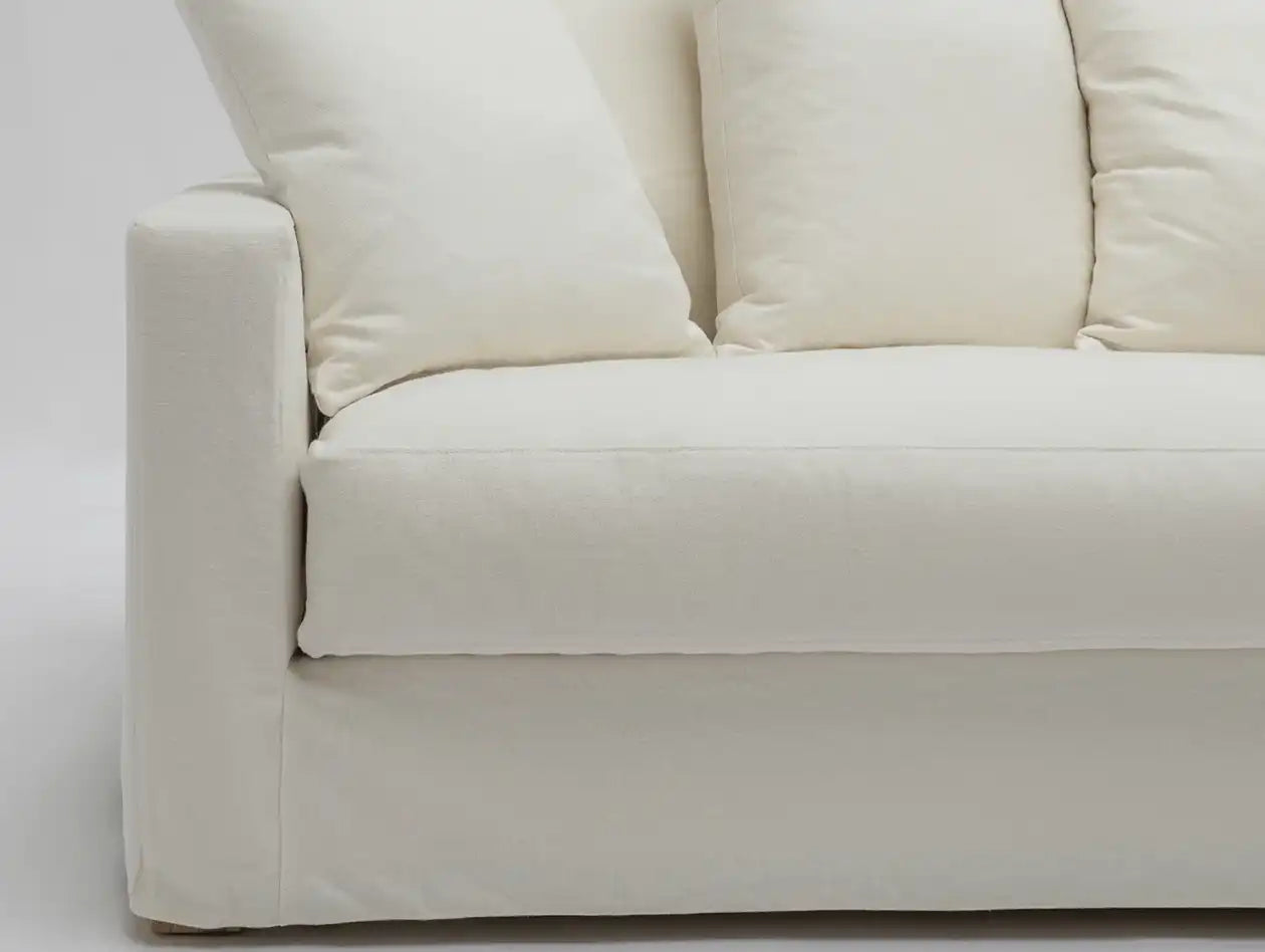 It has a shabby yet chic, boxy design with slip covers for easy cleaning. The slipcover is a thick hardwearing fabric made of 55% cotton and 45% linen.