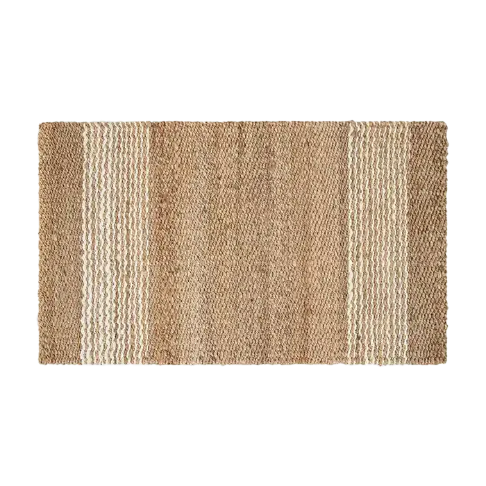 Classic door mat crafted from 100% jute and featuring a sutble contast of linear detailing at each end.
