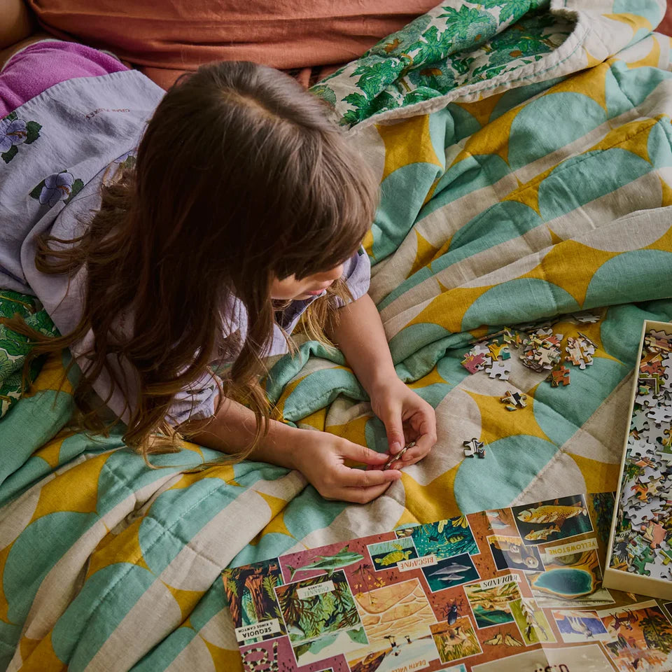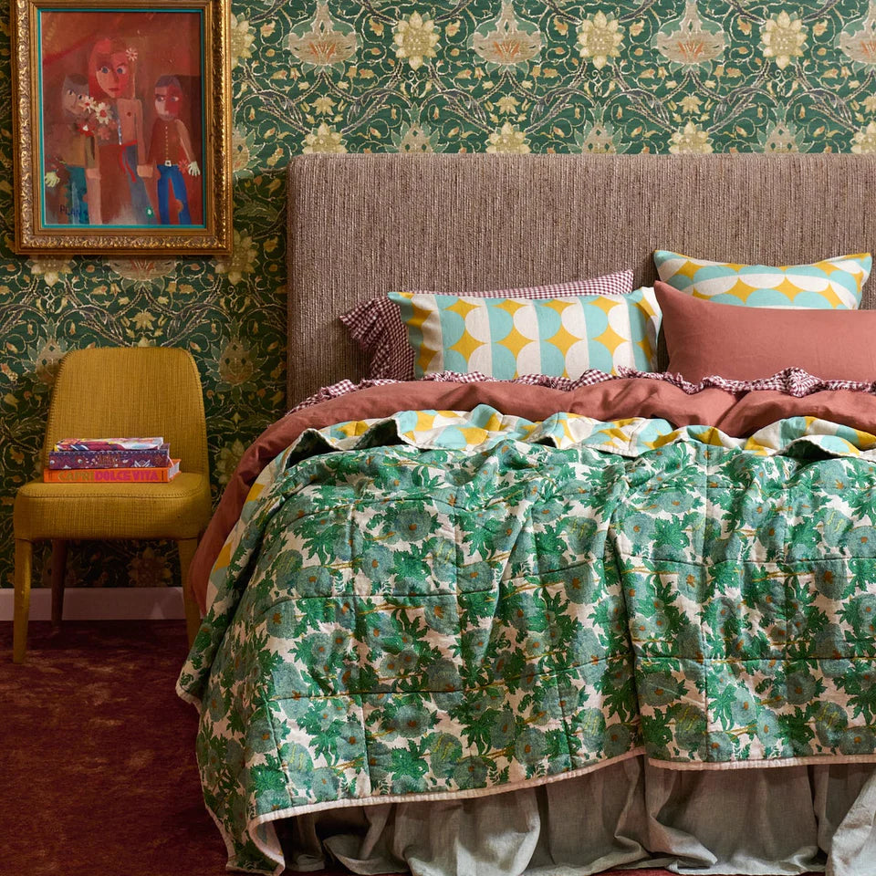 The standard sized quilt is suited to single beds as a blanket or as a throw on larger sized beds. Also great as a throw on a sofa. The king sized quilt is suited to go on a queen or king bed as a blanket.