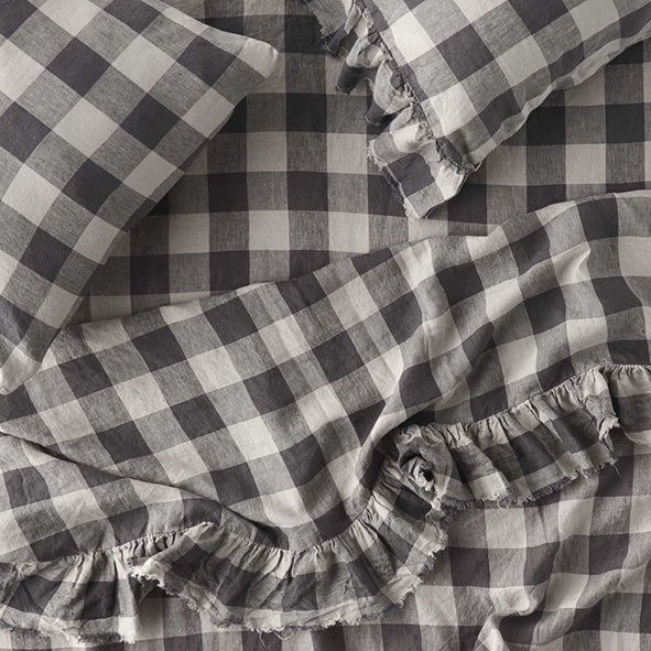 Beautiful linen flat sheet, featuring a 12cm ruffle on the top edge.