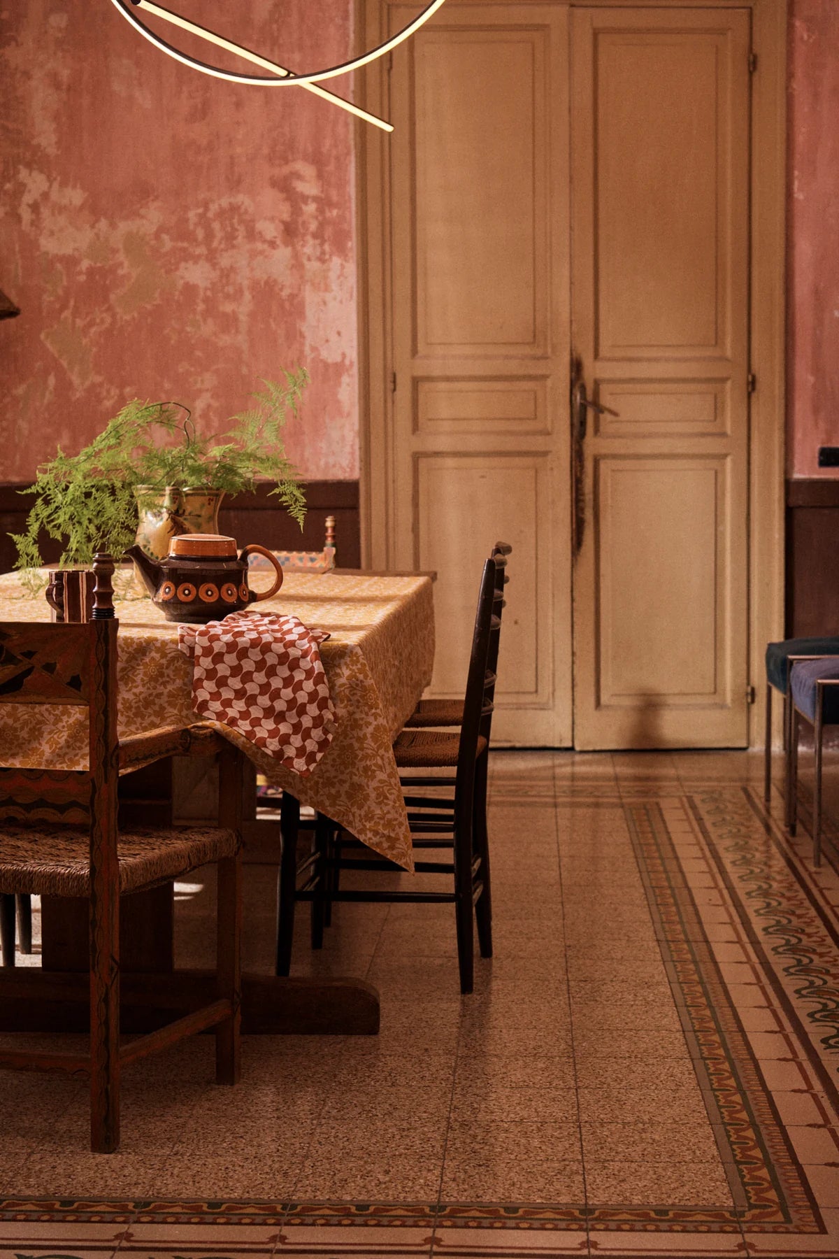 Beautiful linen napkins featuring the striking Matteo retro-style print by Society of Wanderers.