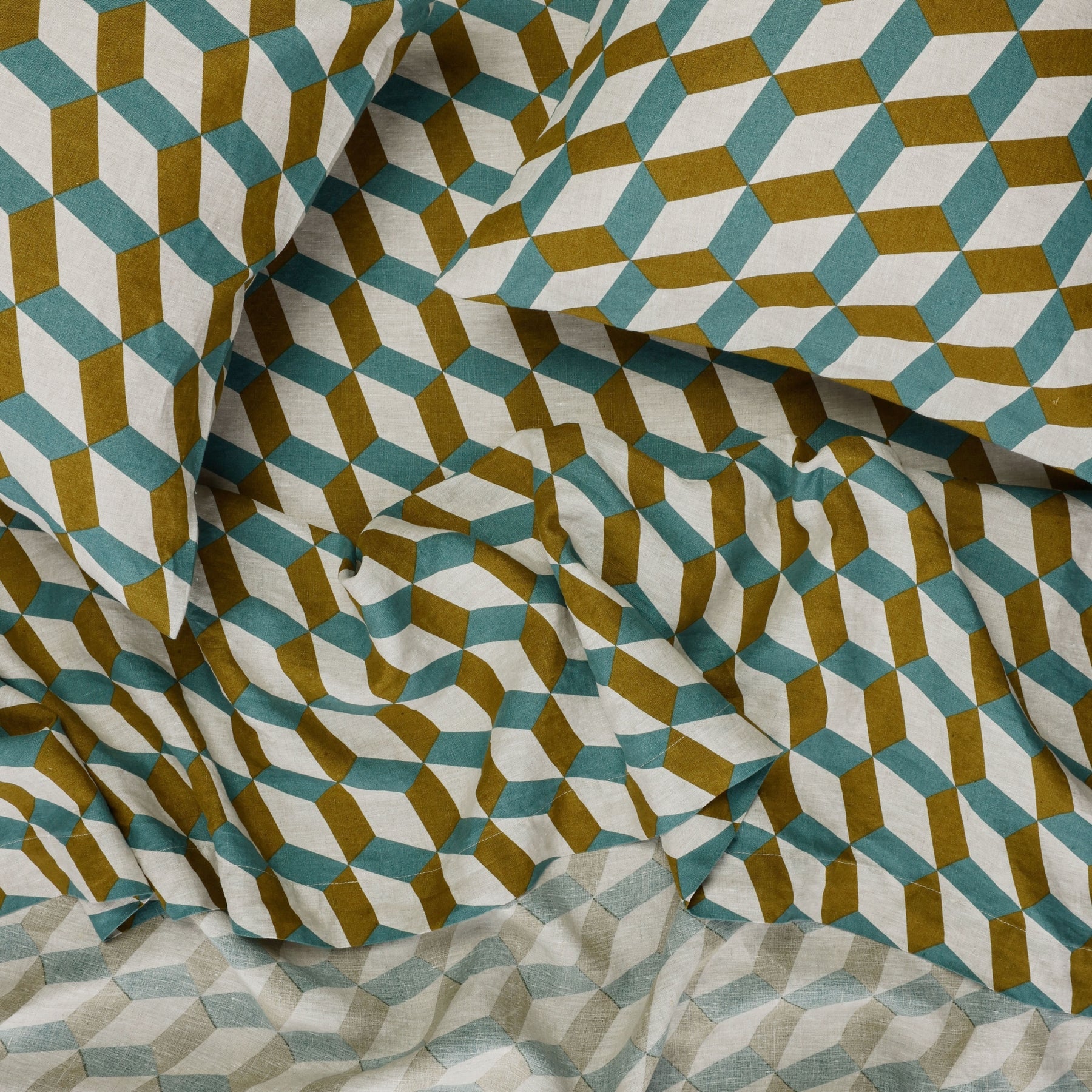 Society of Wanderers beautiful linen flat sheet, in the geometric Raffael design.