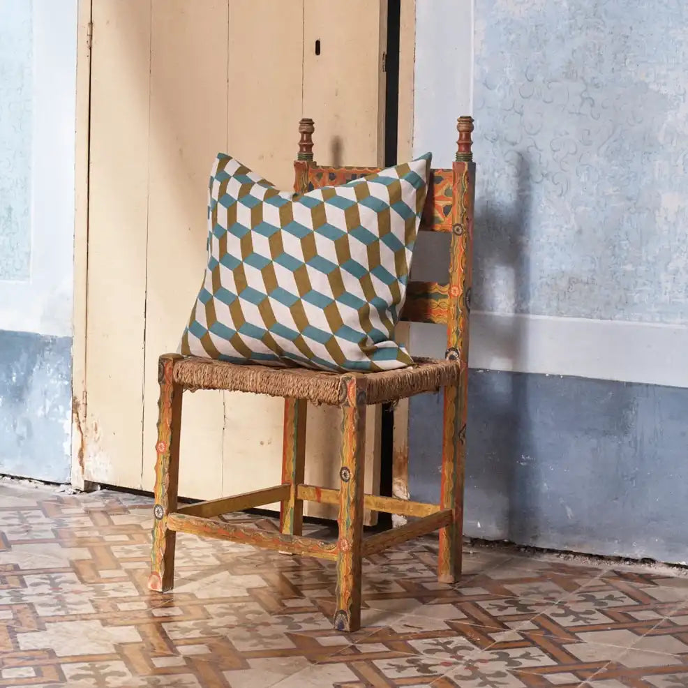 Beautiful Society of Wanderers linen cushion cover, in a striking retro print.