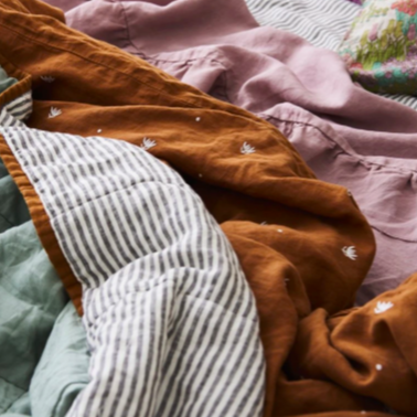 The standard sized quilt is suited to single beds as a blanket or as a throw on larger sized beds. Also great as a throw on a sofa. The king sized quilt is suited to go on a queen or king bed as a blanket.