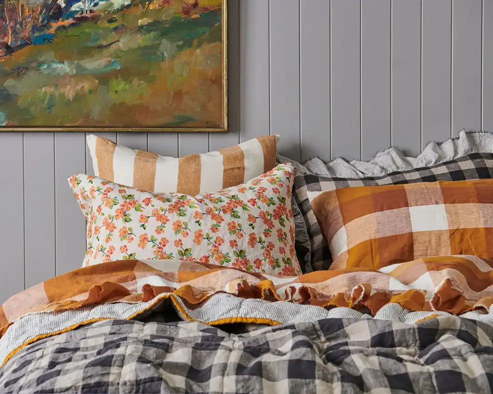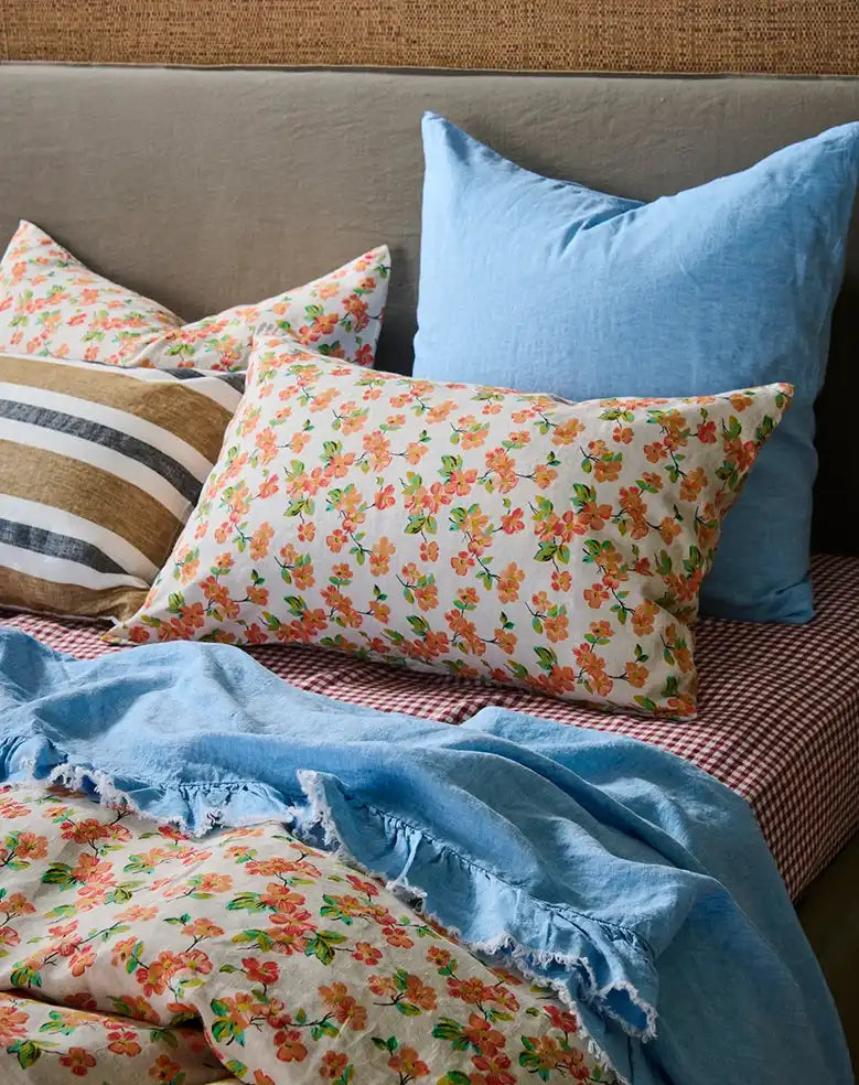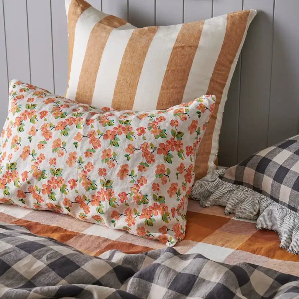 Beautiful set of two linen pillowcases featuring a floral Elma design.