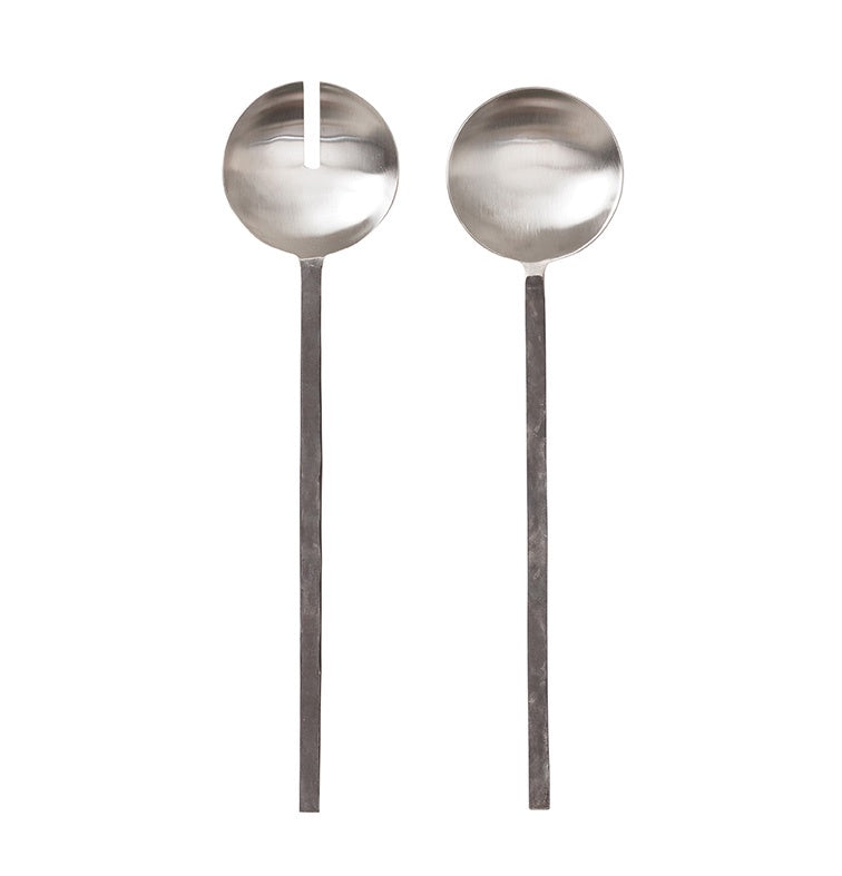 Hand forged burnished salad servers 30cm