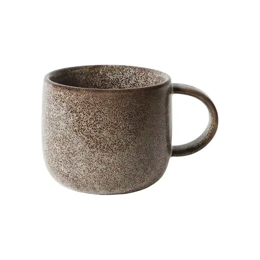 Generously sized mug that is designed to be comfortable to hold and enjoyable to drink from. Finished in a textural and earthy-toned glaze.