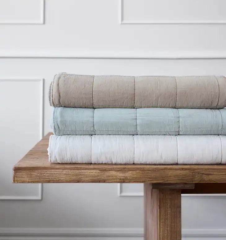 Luxuriously soft & lightweight, this stonewashed cotton piece is finished with machine-square quilting and is perfect for the end of the bed, or sofa.