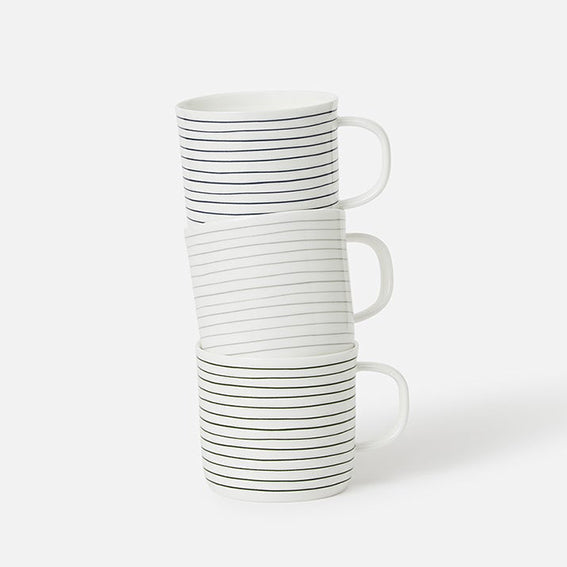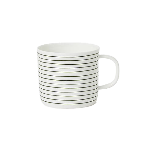 Enjoy a freshly brewed coffee in this classic striped bande cup.