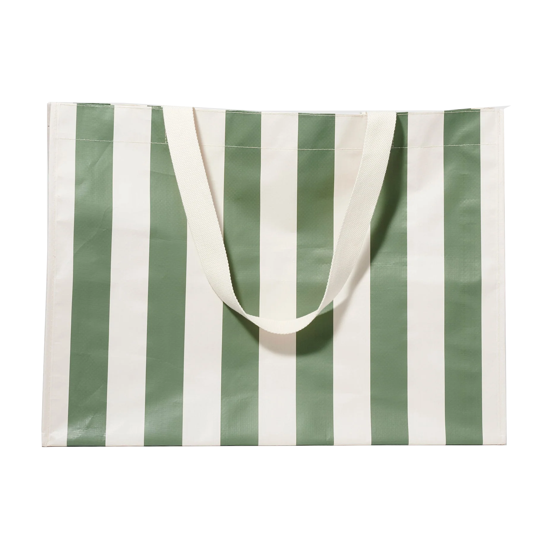 Featuring a classic green stripe and crafted from recyclable woven pp, this large tote bag is waterproof, lightweight and durable.