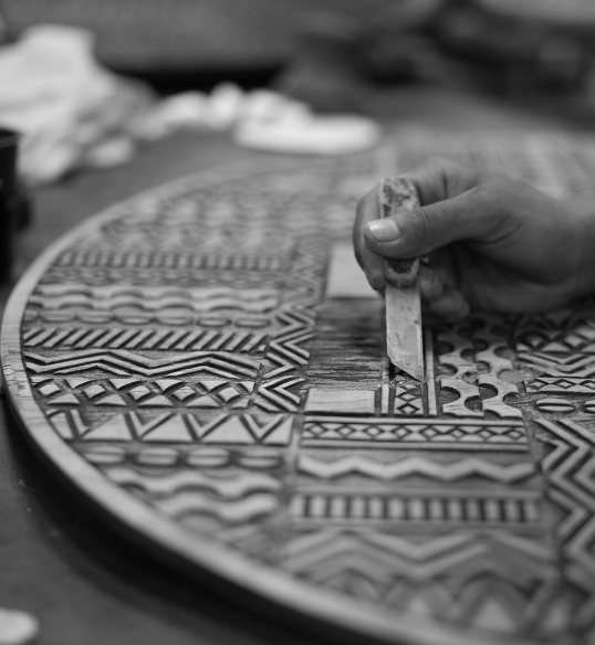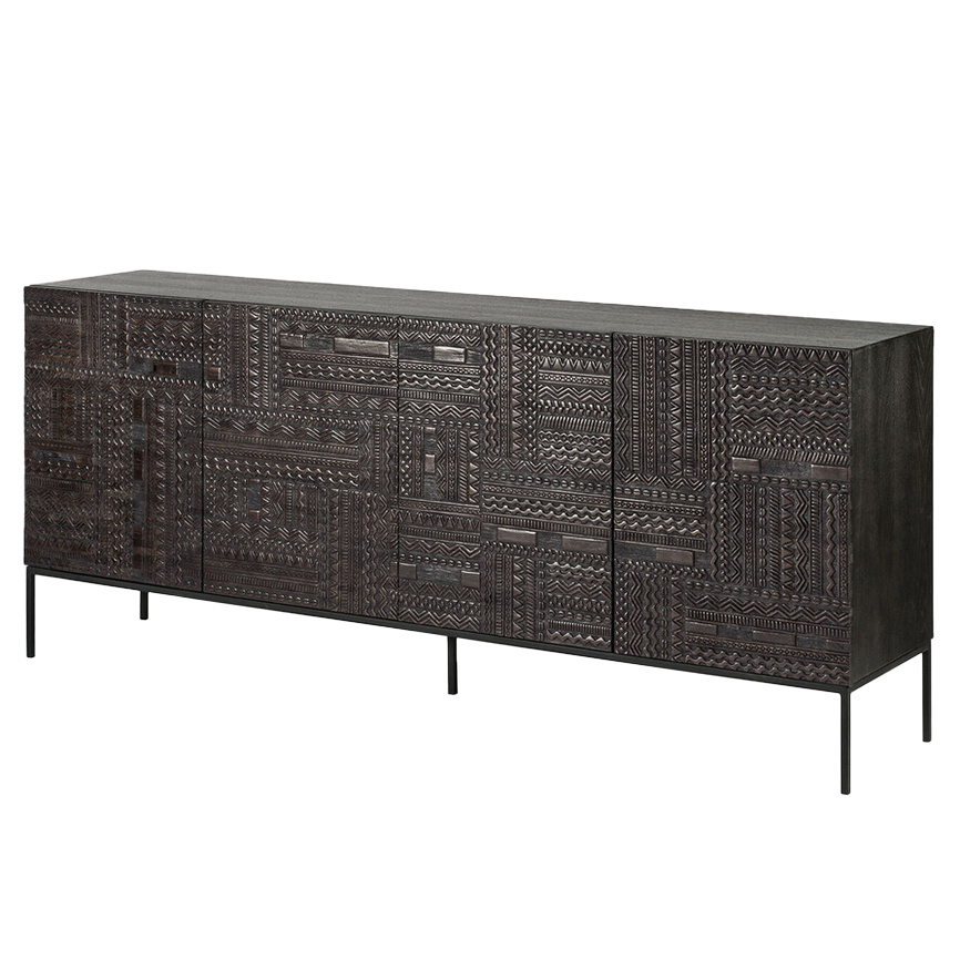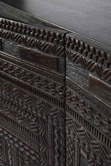 Contemporary wooden furniture are transformed into pieces of art where each pattern is carefully carved by artisans. Named after the Tabwa culture from Central Africa, the pattern's inspiration comes from their fondness for linear geometric motifs.