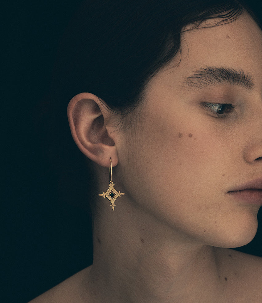 The cross-brushed Corin earrings feature four points that indicate the four cardinal directions: north, south, east and west. These are intimately tied to the natural elements: earth, air, fire and water.