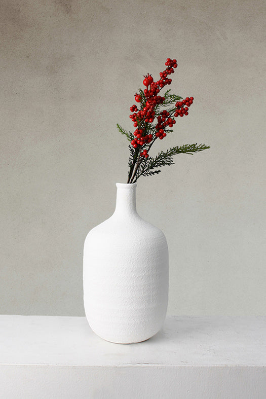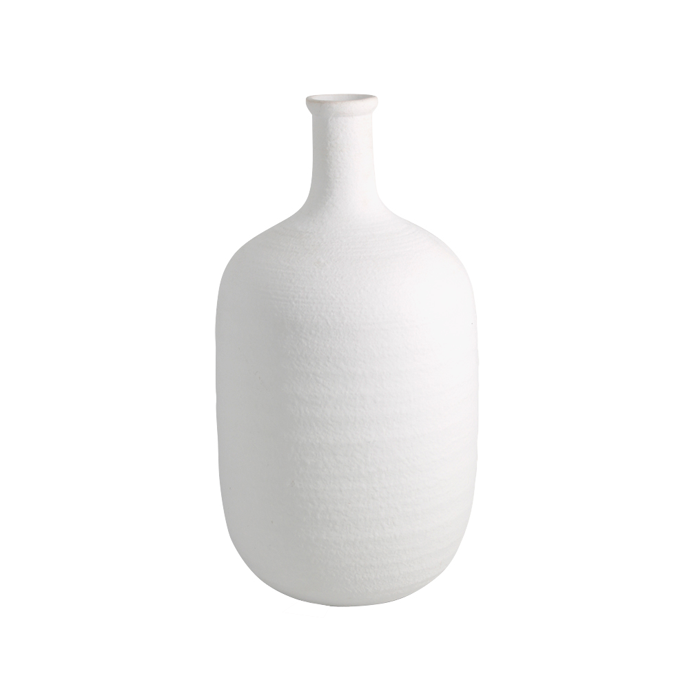 Textured decorative vase, featuring an organic finish in a lovely bottle shape.