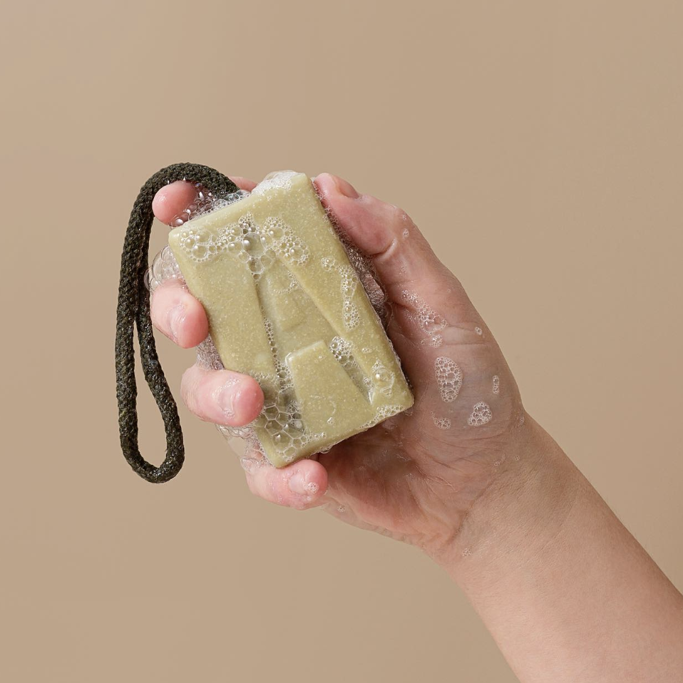 Aermeda triple butter & green clay soap on rope