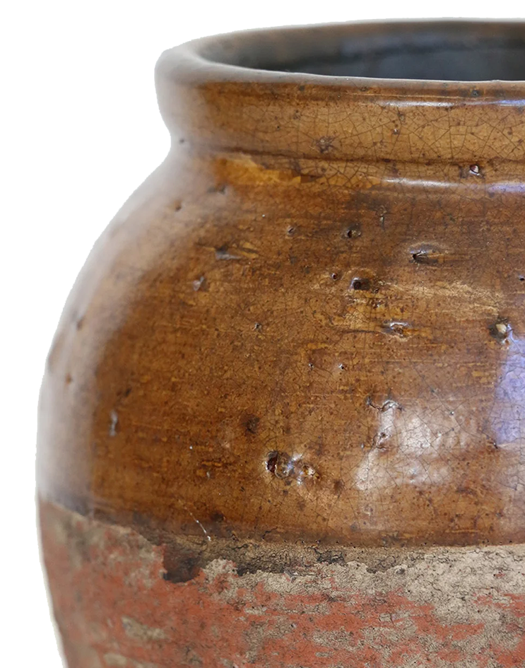 Rustic handmade terracotta urn featuring a naturally toned rustic finish, with a warm brown glaze.