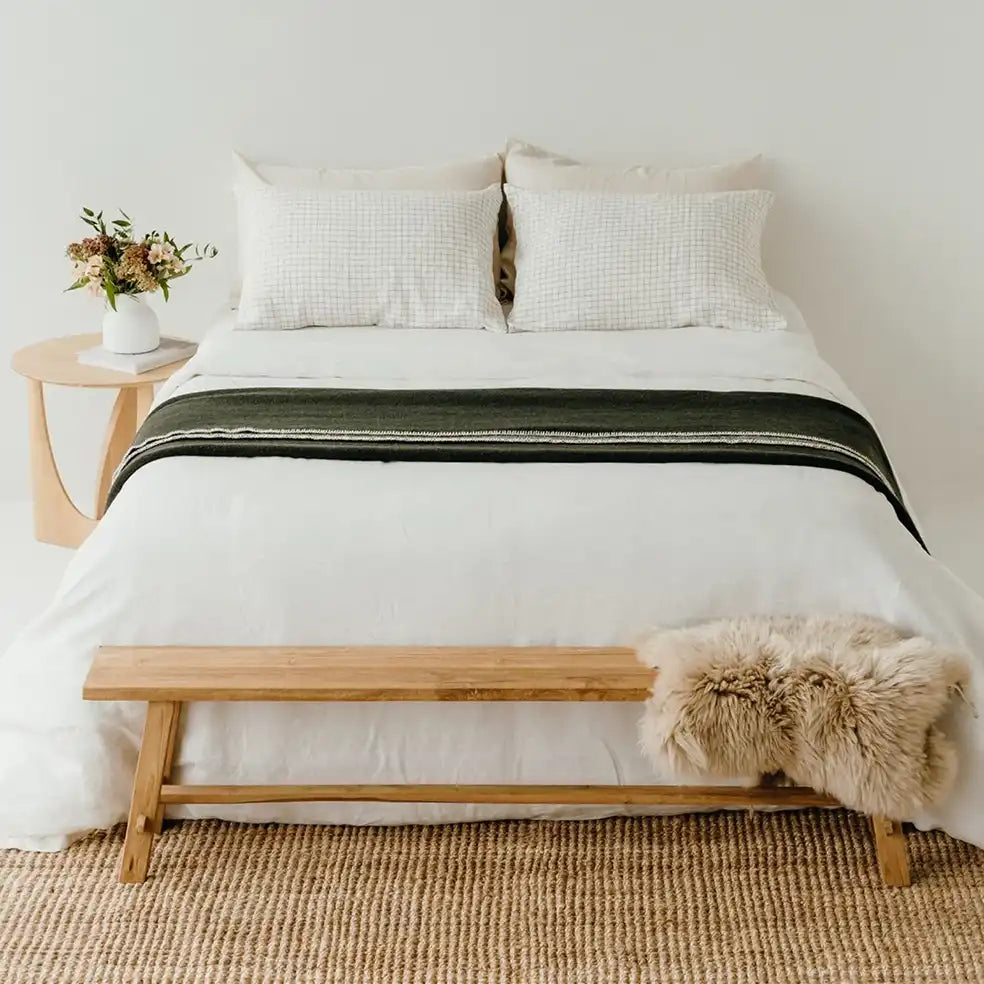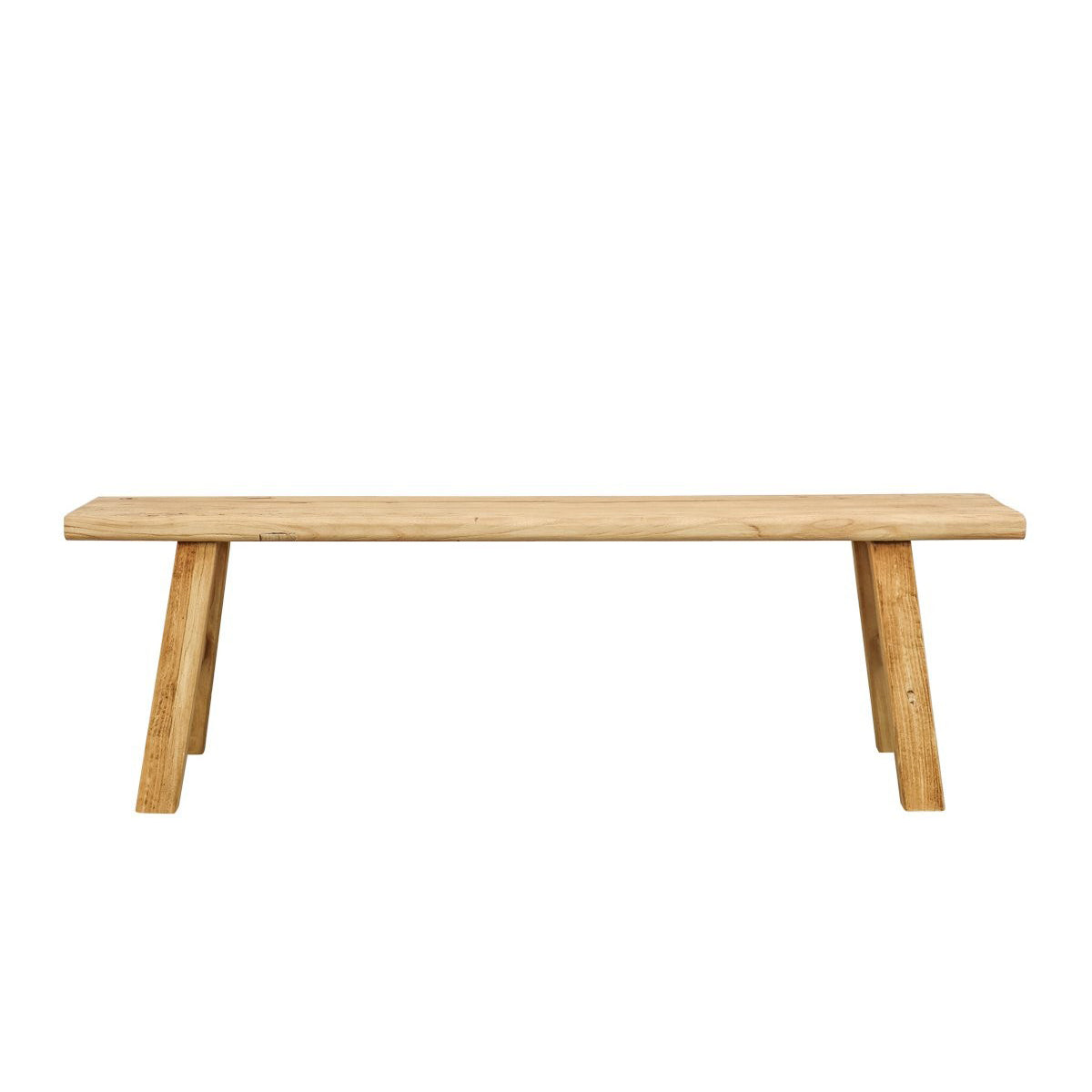 This simple wooden reclaimed elm wood bench is a versatile styling piece that can be used in many rooms.
