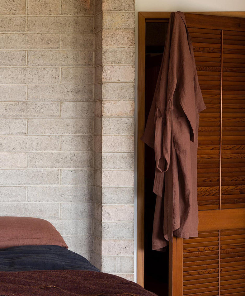 This plum toned robe has a relaxed fit with a belt that ties comfortably at the waist. Made from OEKO-TEX certified flax linen sourced from Belgium and France.